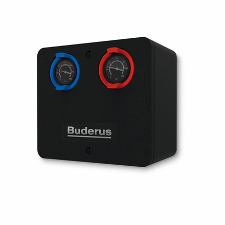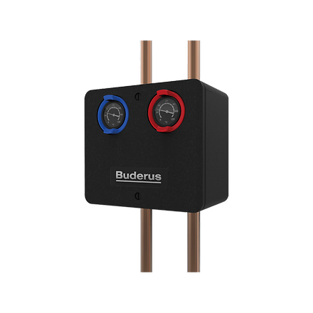 Die neuen Heizkreis Schnellmontage Sets sind zu 100 % anschlusskompatibel mit den Komponenten früherer Generationen: die Komponentenbreite der bisherigen Buderus Heizkreis Schnellmontage Sets wurde beibehalten. Die Abscheidegruppe ist besonders in Kombination mit einer Hocheffizienzpumpe zu empfehlen.